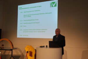 Nach der Pause mit reichhaltiger Verpflegung und dieses Jahr durch den Verband VSLSG offeriert, ging es mit dem offiziellen Teil der GV weiter. Dabei ĂŒberbrachten Christoph Ackermann, PrĂ€sident SGV und Thomas Minder, PrĂ€sident VSLCH die einleitenden Grussbotschaften.